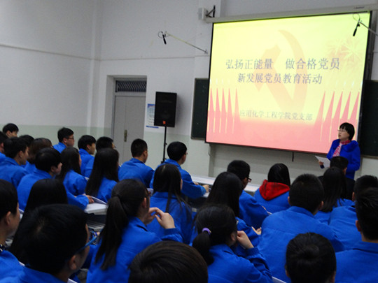 为进一步增强预备党员的责任意识,更好地发挥学生党员模范带头作用,鼓励大家争做合格共产党员,3月17日晚上7时,应用化学工程学院党总支在西阶二教室举办了“弘扬正能量、做合格学生党员”的新发展学生党员教育活动。学院党总支书记吴海霞、辅导员、新发展学生党员、入党积极分子代表参加了活动。