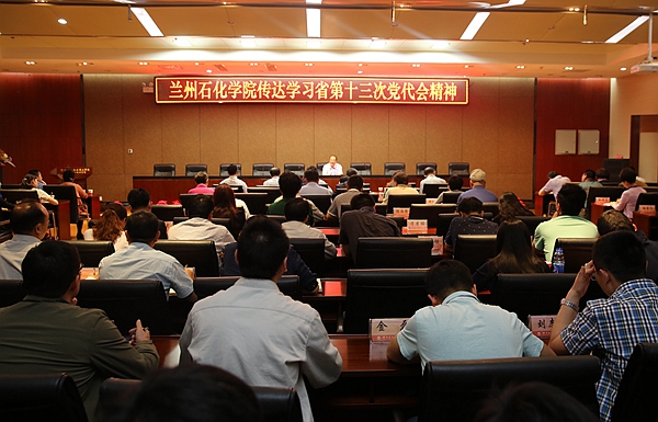 连日来,甘肃省第十三次党代会已经成为我校师生关注的热点,特别是林铎同志所作的报告,更是成为大家热烈讨论的话题。5月27日下午,甘肃省第十三次党代会代表、学校党委书记周兴中同志在学校东区石化厅及时传达学习甘肃省第十三次党代会精神,安排部署了学校全面贯彻落实甘肃省十三次党代会精神有关工作。学校领导、全校副科级以上干部、民主党派负责人共100余人参加了会议。