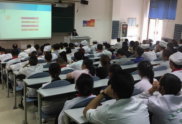6月15日中午,后勤(膳食)处在学院东区阶梯教室举办了由全体饮食管理人员和餐饮从业人员150多人参加的食品安全知识培训。