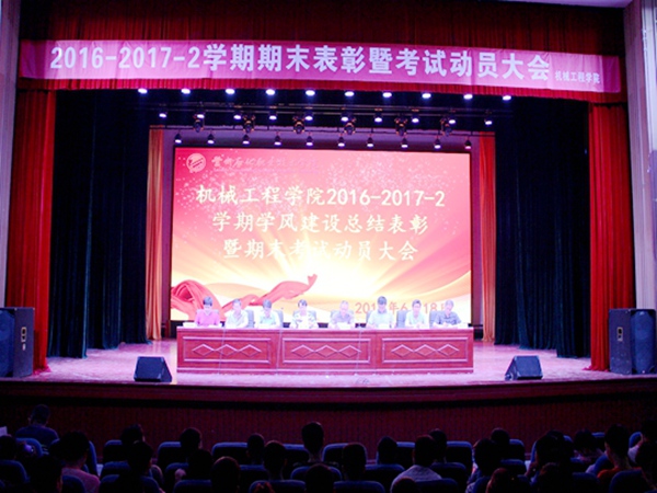 为了全面总结机械工程学院一学期来的学生工作,安排布置学生暑假工作,为即将到来的期末考试进行全面动员。机械工程学院于6月18日晚在学院东区礼堂召开2016-2017-2学期学风建设总结表彰暨期末考试动员会,系领导、辅导员、15级、16级学生参加了会议。