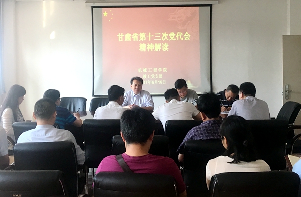 会上,黄义仿首先强调要坚持把“两学一做”学习教育作为重大政治任务来抓,把思想政治建设摆在首位,切实树牢“四个意识”,坚决把纪律和规矩挺在前面,坚持带着问题学、聚焦问题查、对着问题改,坚持学做结合以知促行,推动“两学一做”学习教育取得明显成效。接下来,黄义仿全文传达了《中国共产党甘肃省第十三次代表大会报告》,对报告的精神实质进行了深入浅出的解读,着力学习了习近平总书记在2013年2月视察甘肃时作出的“八个着力”的重要指示。黄义仿要求,全院上下要充分认识学习宣传省第十三次党代会精神的重大意义,切实把全院广大师生的思想和认识统一到大会精神上来,把智慧和力量凝聚到大会确定的奋斗目标上来,凝聚到学校转型发展上来。各位党员同志要充分发挥表率作用,树牢和践行“四个意识”,带头学习宣传和贯彻落实大会精神,以报告为指导,推进学校发展。