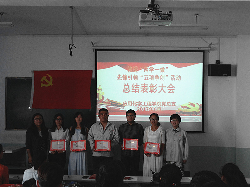 在中国共产党96周岁华诞到来之际,为深入推进“两学一做”学习教育常态化制度化发挥党员先锋模范作用。6月12日下午,应用化学工程学院党总支在综合楼404教室召开推进“两学一做”先锋引领“五项争创”活动总结表彰大会。会议由学院党总支书记吴海霞主持,全院教职工党员、学生党员共110人参加了会议。