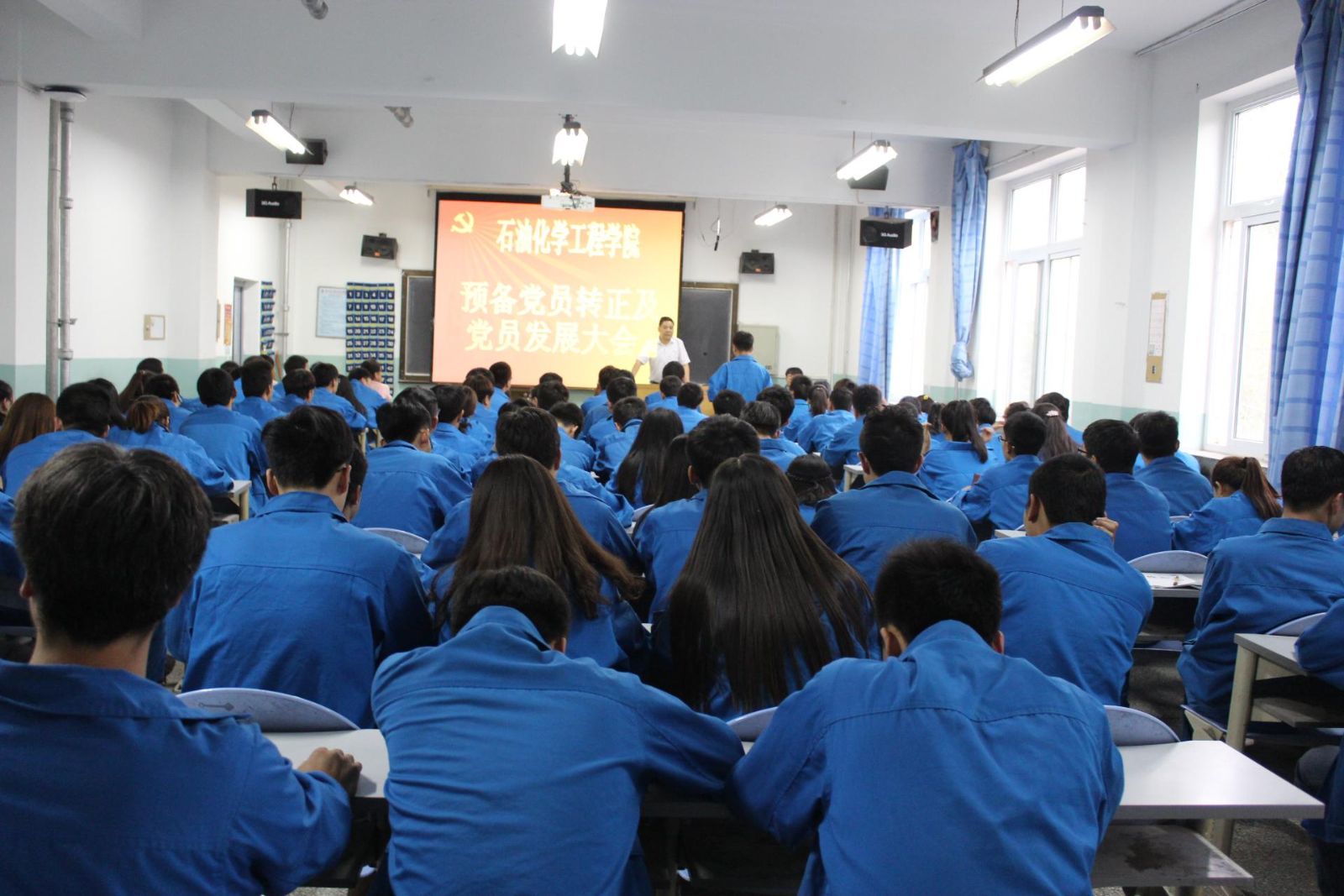 为了进一步提高党组织建设的科学化水平,切实加强大学生党员队伍建设,6月13日晚,石油化学工程学院党总支开展了新党员入党宣誓及老党员重温入党誓词活动,教师党员、61名预备党员及52名新党员等参加了入党宣誓。