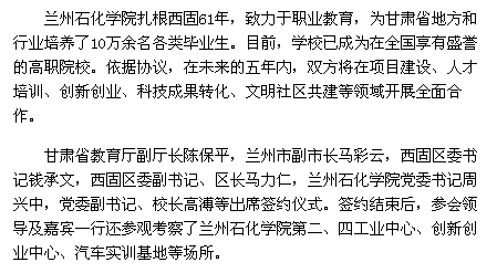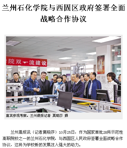 【兰州晨报】兰州石化学院与西固区政府签署全面战略合作协议