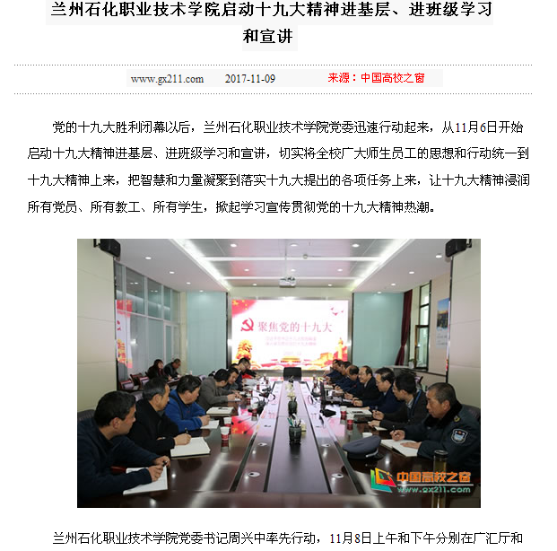 【中国高校之窗】兰州石化职业技术学院启动十九大精神进基层、进班级学习和宣讲
