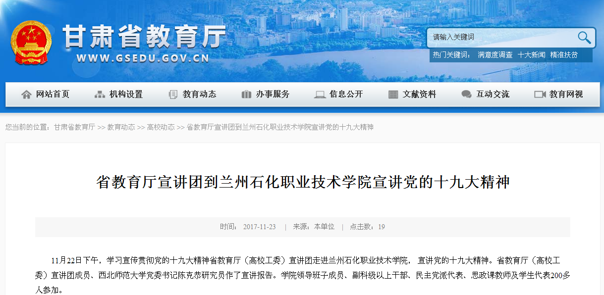 【省教育厅网】省教育厅宣讲团到兰州石化职业技术学院宣讲党的十九大精神