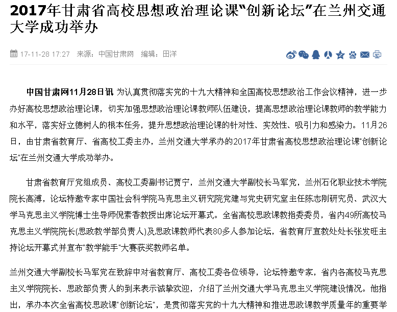 【中国甘肃网】2017年甘肃省高校思想政治理论课“创新论坛”在兰州交通大学成功举办