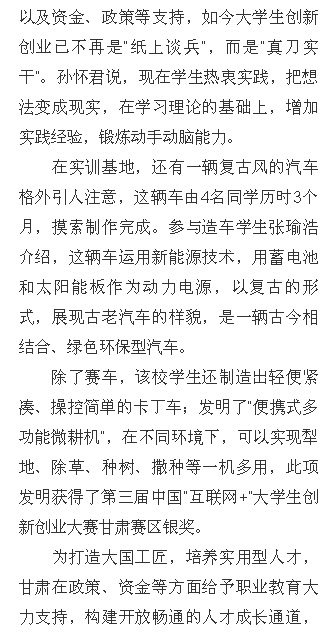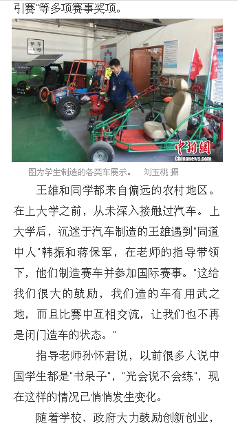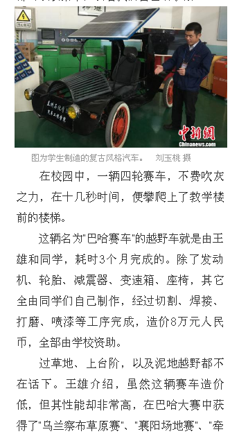 【中国新闻网】甘肃大学生“造”出各类车 高校人才培养多元化
