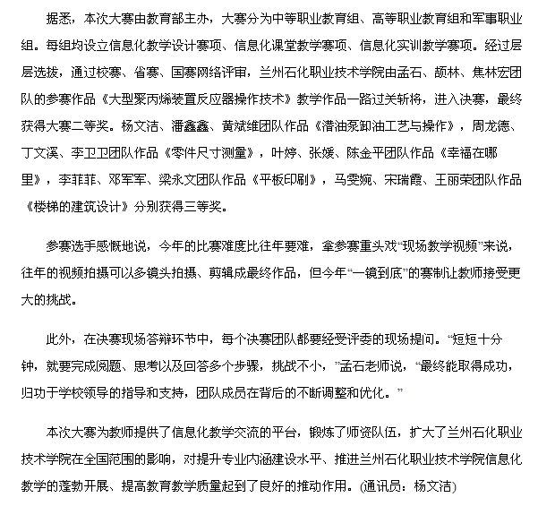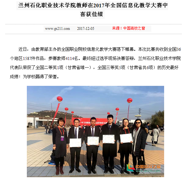 【中国高校之窗】兰州石化职业技术学院教师在2017年全国信息化教学大赛中喜获佳绩