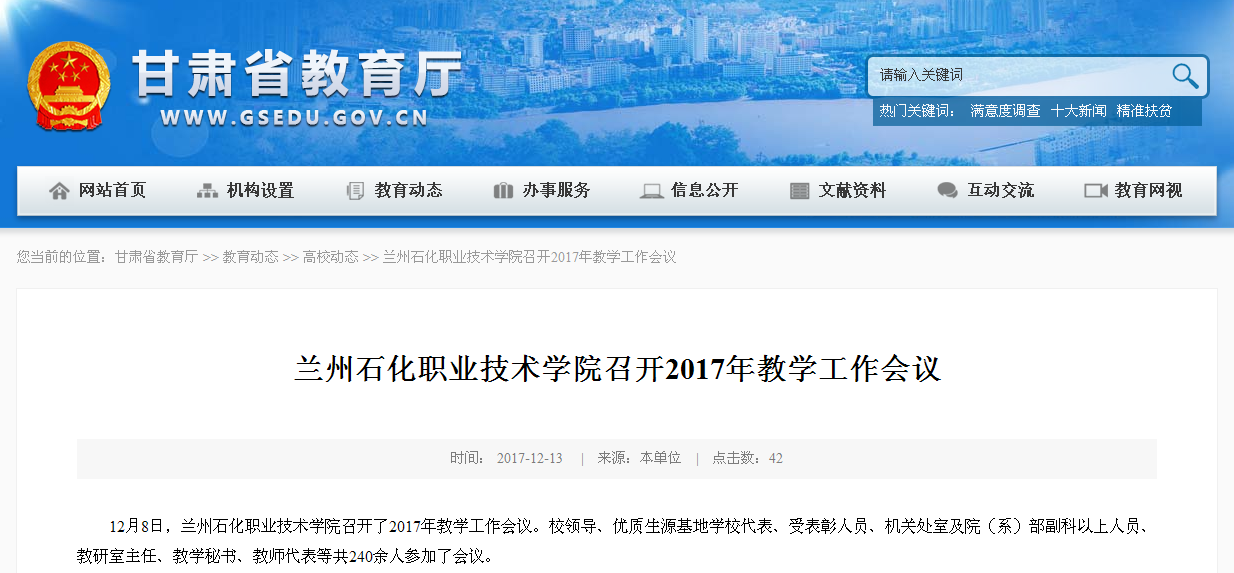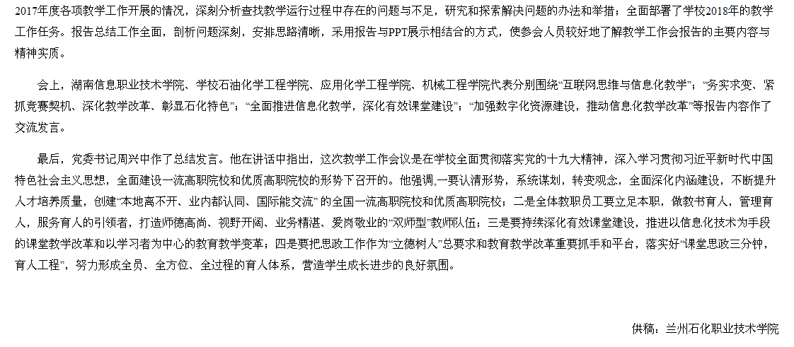 【省教育厅网】兰州石化职业技术学院召开2017年教学工作会议