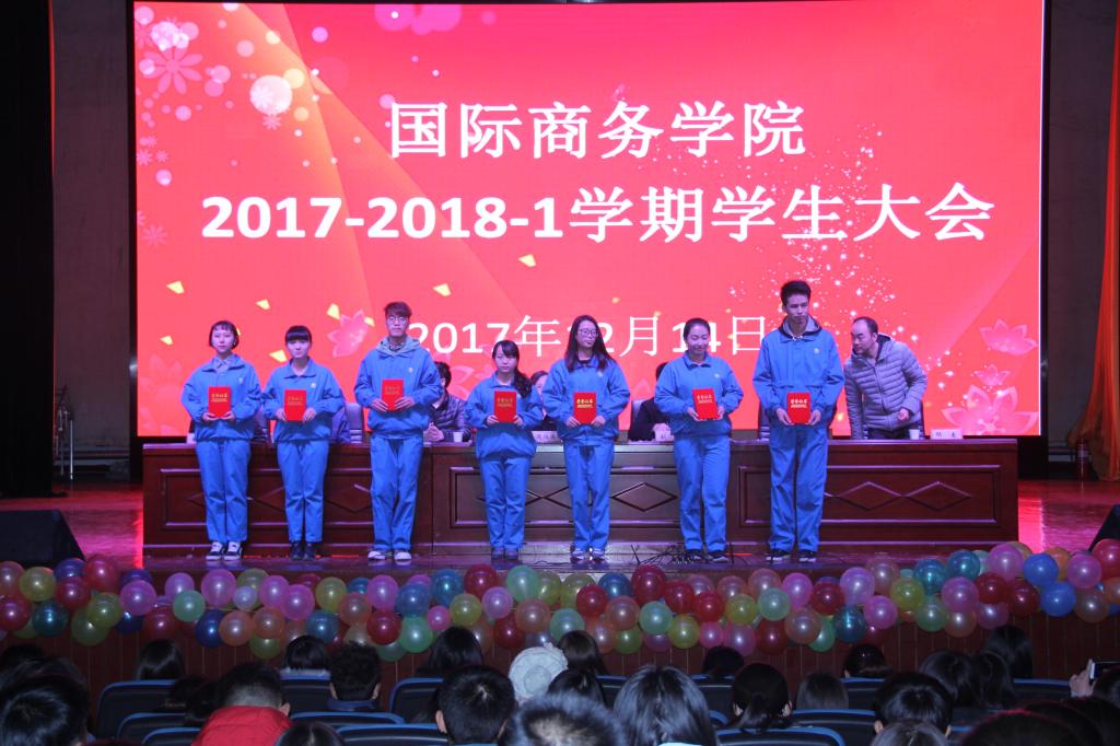 大会开始后,孙永建宣读本学期在各种活动中获奖学生的表彰决定。大会为获奖学生颁奖。随后,获得“奥派杯”移动商务技能大赛全国总决赛第一名的王敬博代表获奖学生发言,介绍了自己参加技能大赛的心得体会和成功经验,勉励同学们积极参加技能竞赛,不断提升专业素质。接着,院团总支书记宋倩安排了假期素质提升工程。