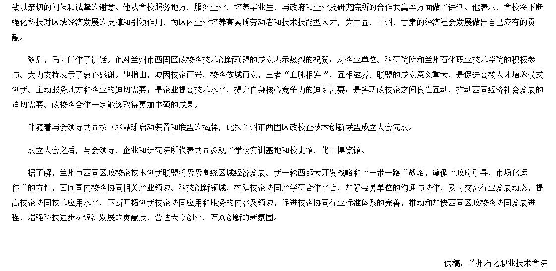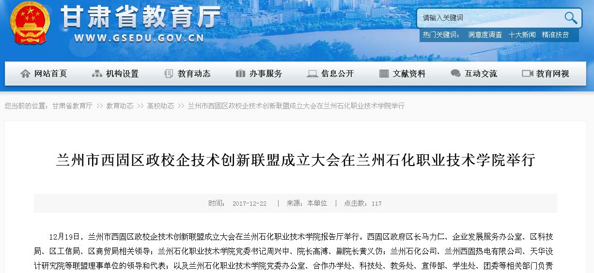 【省教育厅网】兰州市西固区政校企技术创新联盟成立大会在兰州石化职业技术学院举行