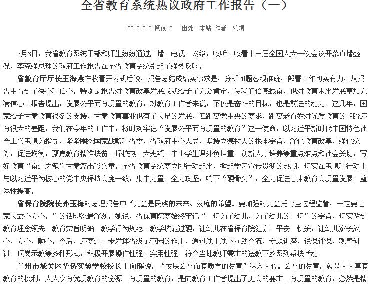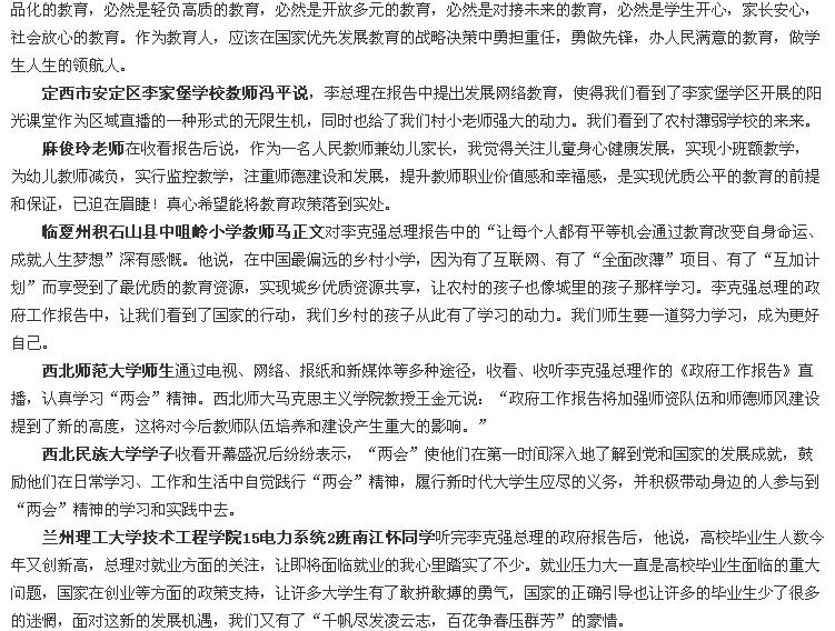 【甘肃教育网】全省教育系统热议政府工作报告(一)