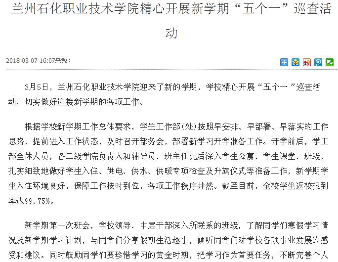 【每日甘肃网】兰州石化职业技术学院精心开展新学期“五个一”巡查活动