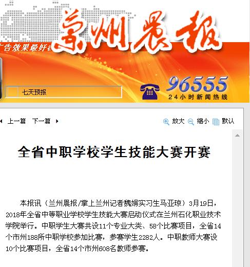 【兰州晨报】全省中职学校学生技能大赛开赛
