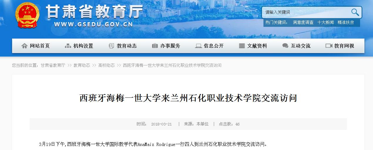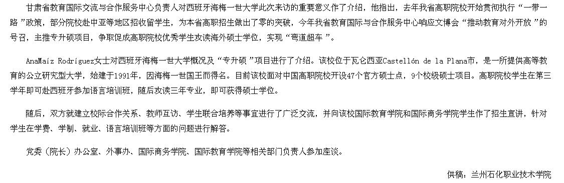 【省教育厅网】西班牙海梅一世大学来兰州石化职业技术学院交流访问