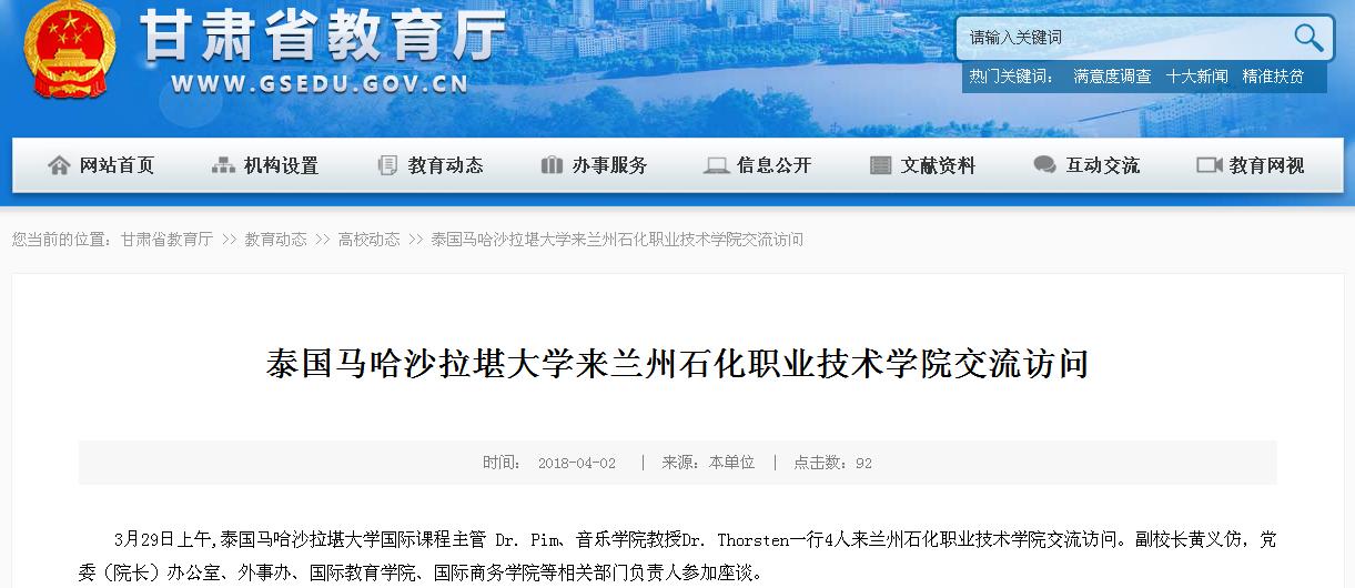 【省教育厅网】泰国马哈沙拉堪大学来兰州石化职业技术学院交流访问