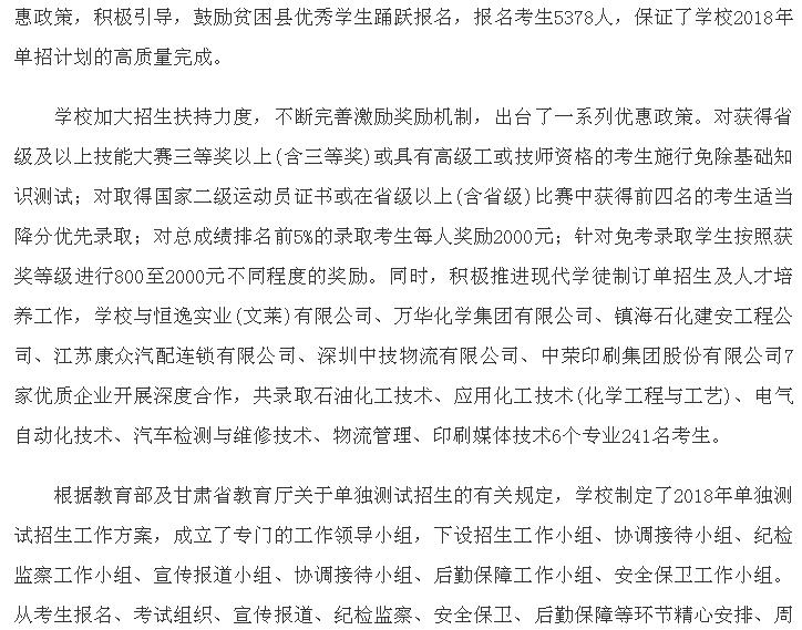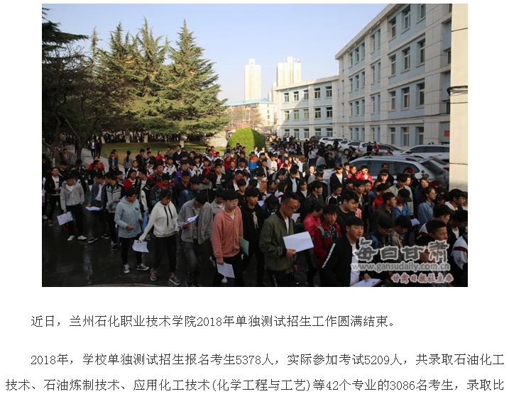 【每日甘肃网】兰州石化职业技术学院2018年单独测试招生工作圆满结束