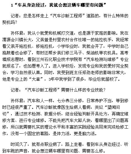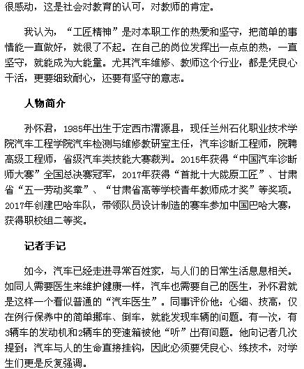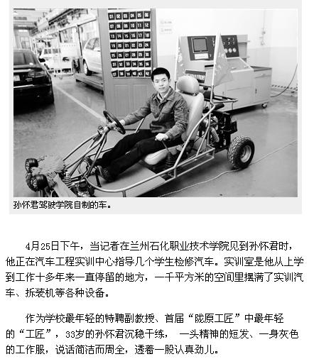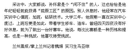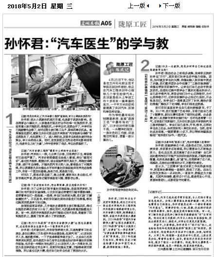 【兰州晨报】孙怀君:“汽车医生”的学与教