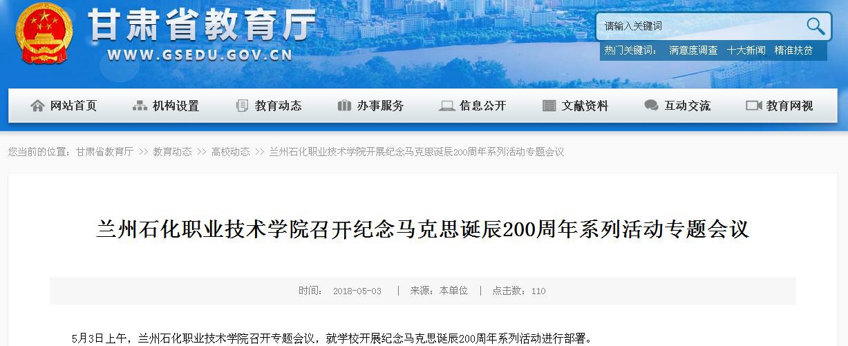 【省教育厅网】兰州石化职业技术学院召开纪念马克思诞辰200周年系列活动专题会议