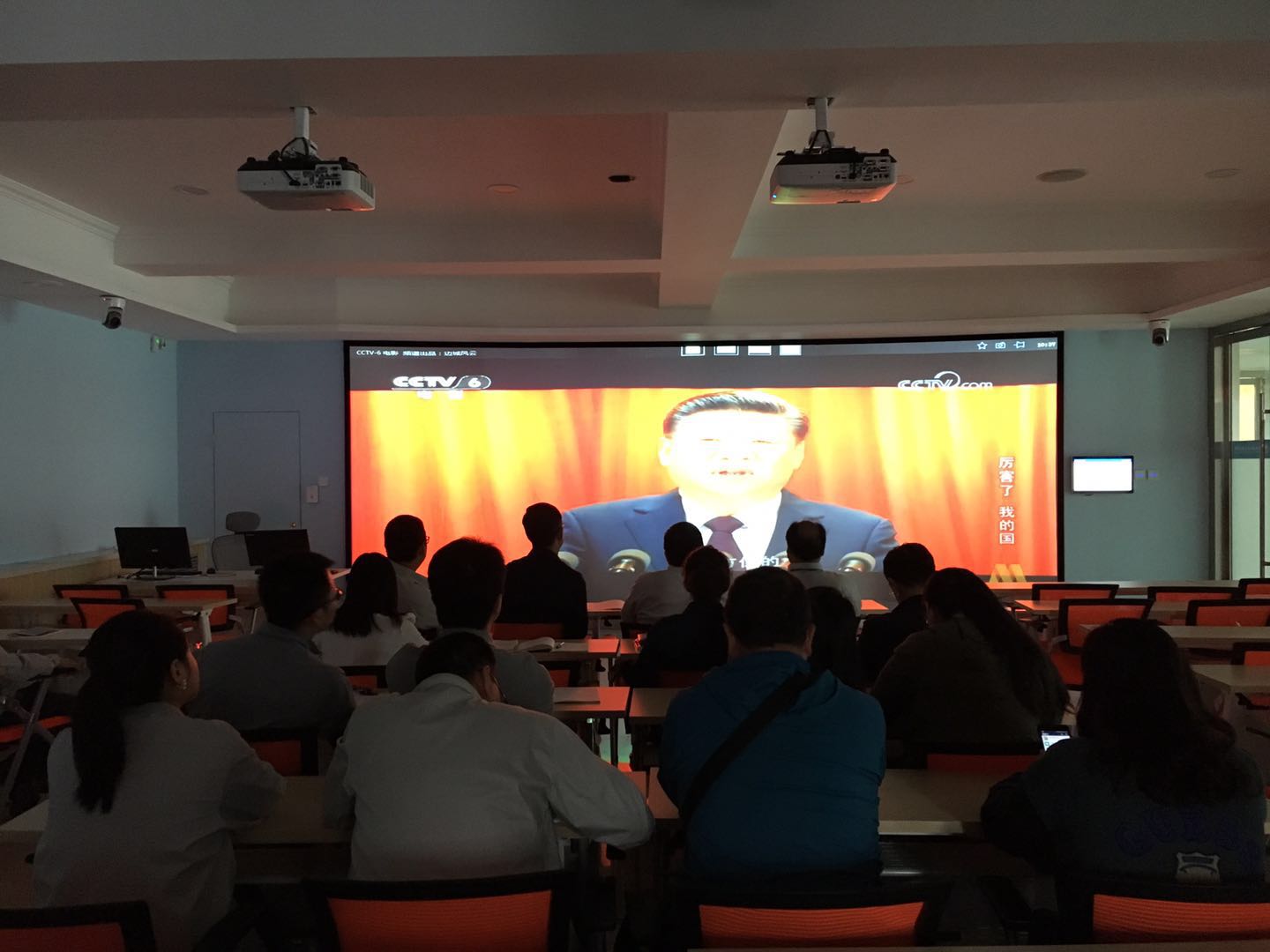 随后,广大党员观看了大型纪录片《厉害了,我的国》,影片全方位展现了党的十八大以来,中国在创新、协调、绿色、开放和共享的新发展理念下所取得的历史性成就。