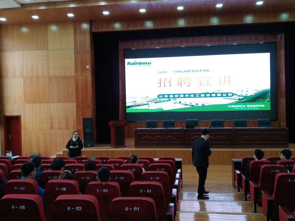 5月10日,山东潍坊润丰化工股份有限公司人力资源部经理郝明青先生一行二人、宁东泰和新材有限公司人力资源部经理王媛女士前来应用化学工程学院遴选2019届毕业生,应化学院领导、老师及应化学院、石化学院、机械学院、电子学院相关专业的学生在西区报告厅参加了企业宣讲会。