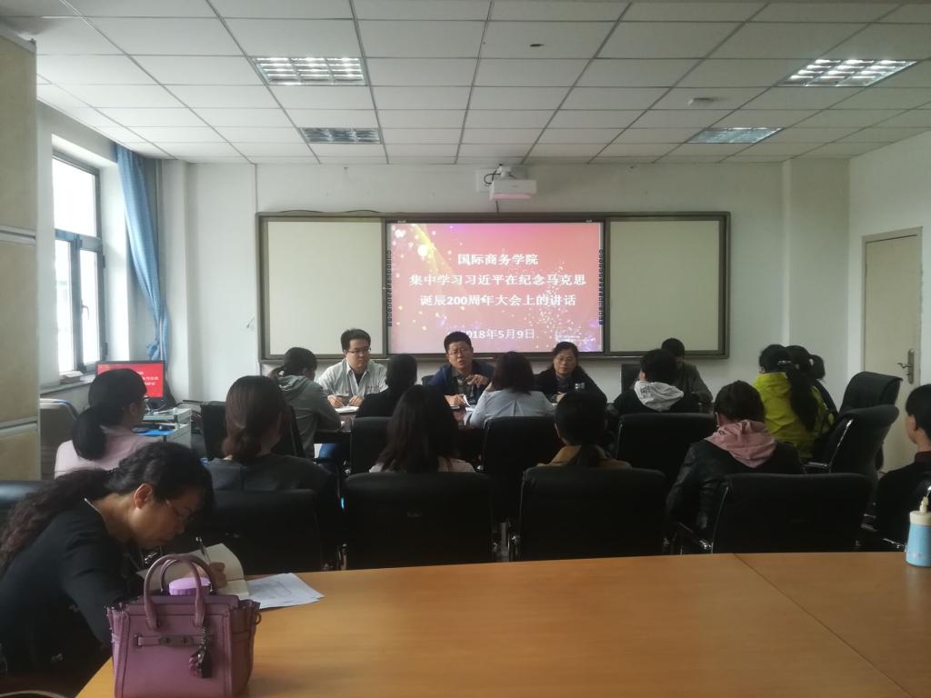 5月9日,国际商务学院在教学楼会议室组织全体教师专题学习习近平总书记重要讲话精神。会议由国际商务学院院长周任慧主持,国际商务学院党总支副书记刘江主讲,学习内容主要结合习近平总书记在北京大学师生座谈会的讲话和在纪念马克思诞辰200周年大会上的重要讲话精神,国际商务学院全体教师参加会议。