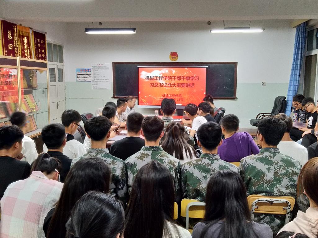 近日,机械工程工程学院辅导员组织学生干部在机电楼展览室学习了习近平总书记在北京大学师生座谈会上的讲话。