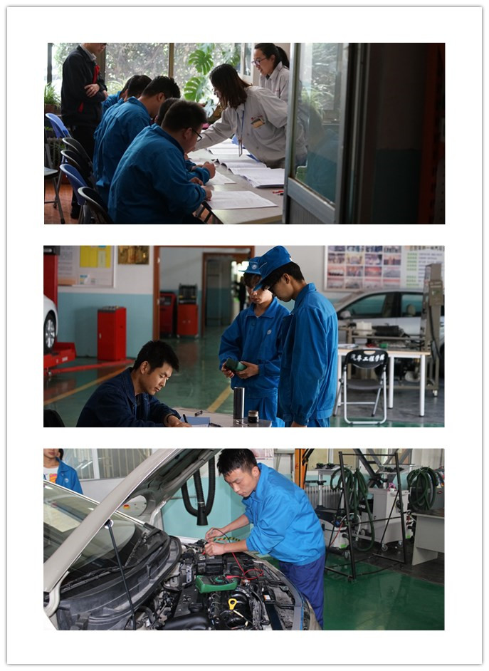 为了汽车维修工等级考试顺利进行,使学生能顺利通过技能考证,保证中级汽车维修工证的通过率,汽车工程学院各教研室制定了详细的专业技能培训计划,并且组织老师按知识点、分模块对学生进行为期一周的辅导培训,同时对实操考试所使用的工具、量具、实操设备和对考试工位和考试顺序流程的安排,都提前做了精心有序的准备。在实操环节考试中,学生们经过前期的认真培训和强化训练,大部分同学能较好地完成考试内容。监考老师认真执行监考纪律、规范和考风,考评员严格考核并按标准评分。