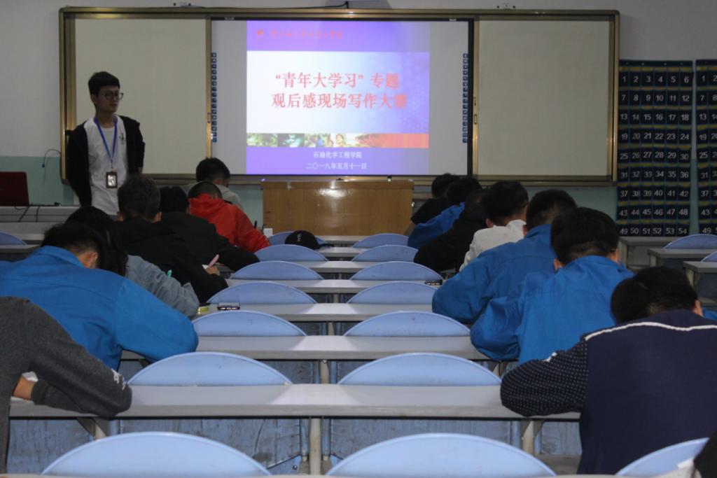 为了加强学生写作能力,丰富学生课余生活。石油化学工程学院响应校团委“青年大学习”的号召近日于化工楼207开展以青年大学习为主题的“新闻报道”现场写作大赛。17级50余名学生参加了活动。