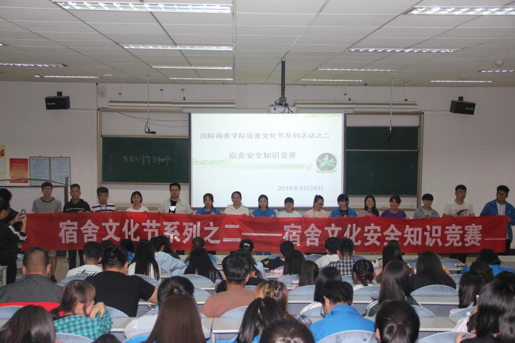 2018年五月初,国际商务学院启动“宿舍文化节”系列活动,继叠军被大赛后,5月24日晚自习时间,在东主教阶梯教室举办宿舍安全知识竞赛,国际商务学院副主任孙永建、辅导员杨春以及部分班主任与16级学生、17级学生参加。首先,孙永建对活动主题与活动意义作了讲话,同时提出八点日常安全注意事项,要求同学们从一言一行做起,提高安全意识,杜绝一切危险隐患,大家共同营造一个安全和谐的生活和学习环境。