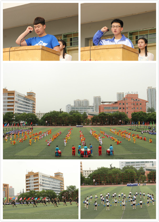 运动员、裁判员分别代表全体运动员、裁判员庄严宣誓,表达了遵守竞赛规则、发扬体育精神的决心和严谨对待赛事、公平公正裁决的态度。紧接着腰鼓协会、啦啦操、心理健康操、擒敌拳表演队进行了文艺表演,阴雨连绵的天气并没有对现场热烈气氛有所影响,同学们掌声四起。