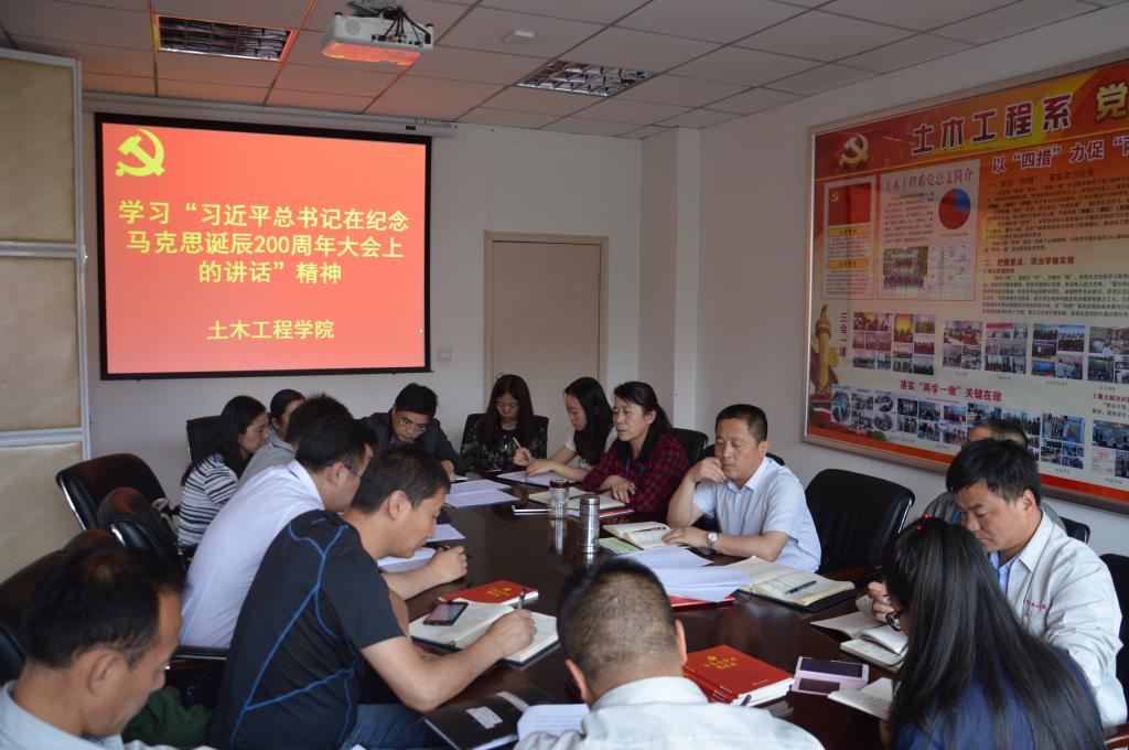 近日,土木工程学院组织教职工学习“习近平总书记在纪念马克思诞辰200周年大会上的讲话”精神。土木工程学院全体教职工参加会议。