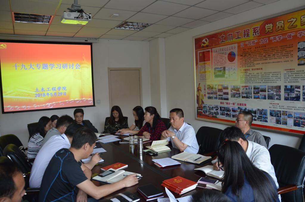 为进一步深入学习贯彻十九大精神,5月29日,在土木工程学院党员之家,土木工程学院组织开展十九大专题学习研讨会,土木工程学院全体教职工参加会议。
