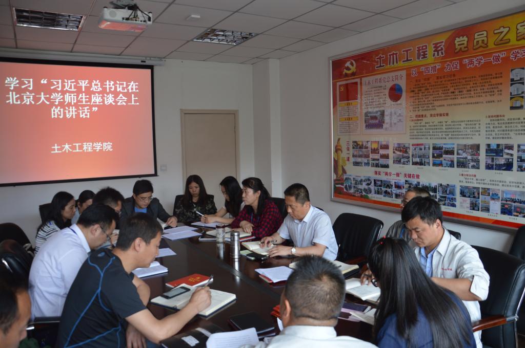 近日,在党员之家,土木工程学院组织教职工学习“习近平总书记在北京大学师生座谈会上的讲话”,全体教职工参加会议。