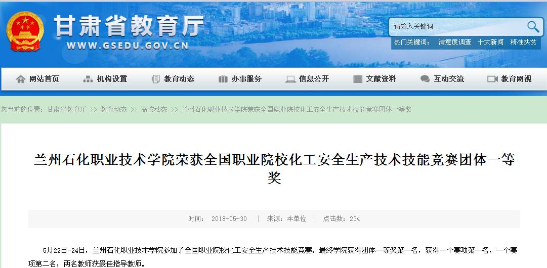 【省教育厅网】兰州石化职业技术学院荣获全国职业院校化工安全生产技术技能竞赛团体一等奖