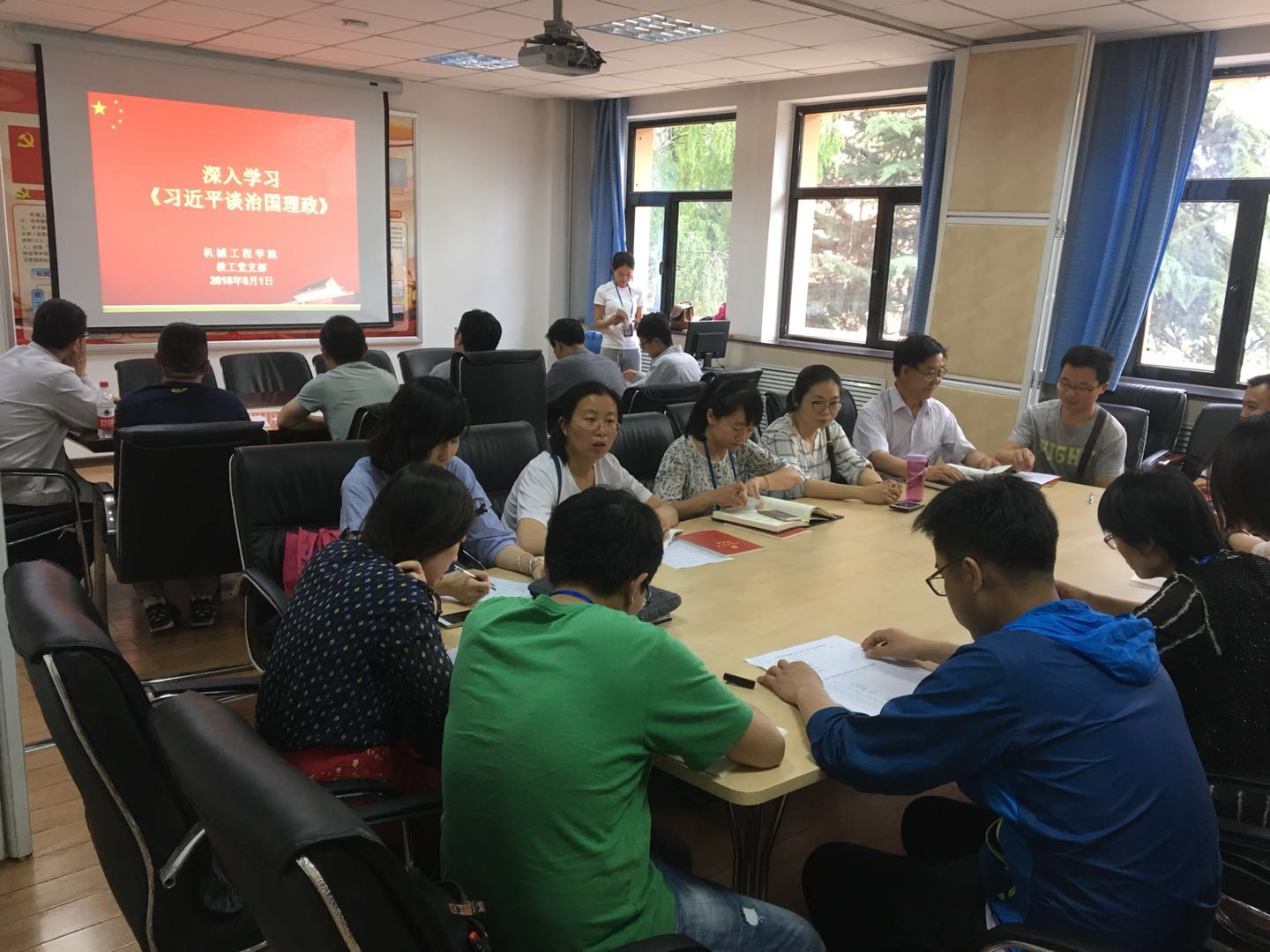 6月1日下午,机械工程学院教工党支部组织全体教工党员在东区教师备课中心党员活动室深入学习了《习近平谈治国理政》第二卷。
