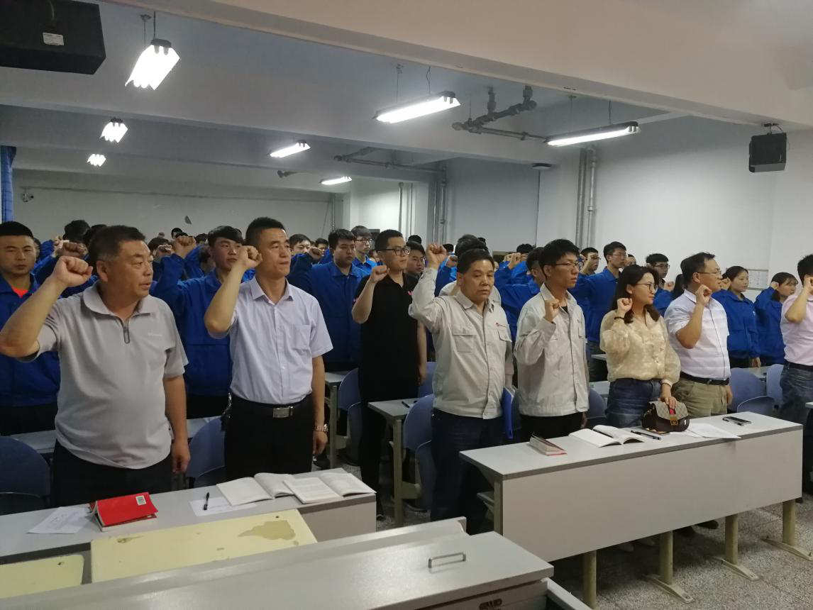 党员大会共有三项议程。一是党支部书记介绍52名预备党员一年来的考察情况,以全票通过转为正式党员。二是介绍45名新发展党员的考察情况,大会一致通过45名学生加入中共预备党员,新发展党员在党旗前进行了入党宣誓,老党员重温了入党誓词。三是党总支书记呼小洲组织学习了新党章,并为全体党员上了生动的党课教育。呼小洲讲到:1.虽然预备党员如期转正,但要走的路还很长,任重而道远,希望转正的正式党员和新发展的预备党员要认真学习《党章》,学习党的路线、方针、政策及十九大精神;2.教育党员不忘初心,方能始终;时刻保持认真的工作态度与学习态度,努力学习,继续学习,终身学习,不断提高自身能力,成为一名合格的共为党员。至此,党员大会圆满结束。