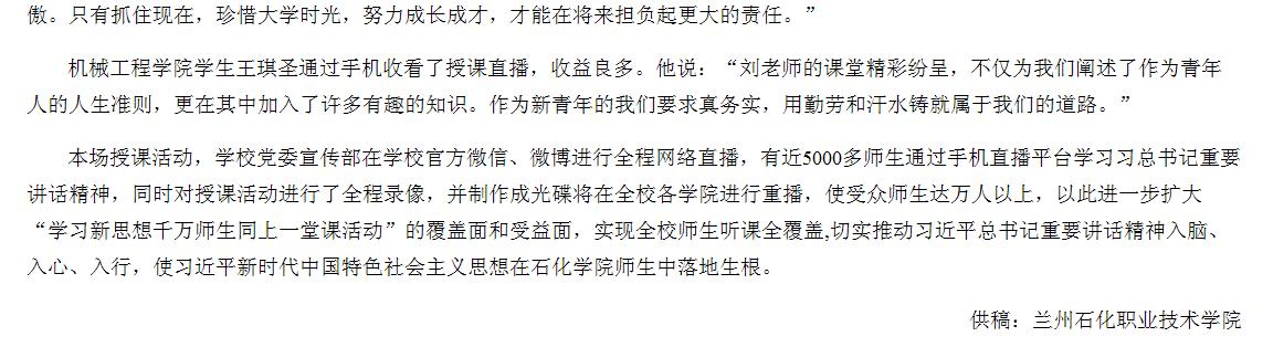 【省教育厅网】“学习新思想千万师生同上一堂课” 兰州石化学院专场授课活动举行