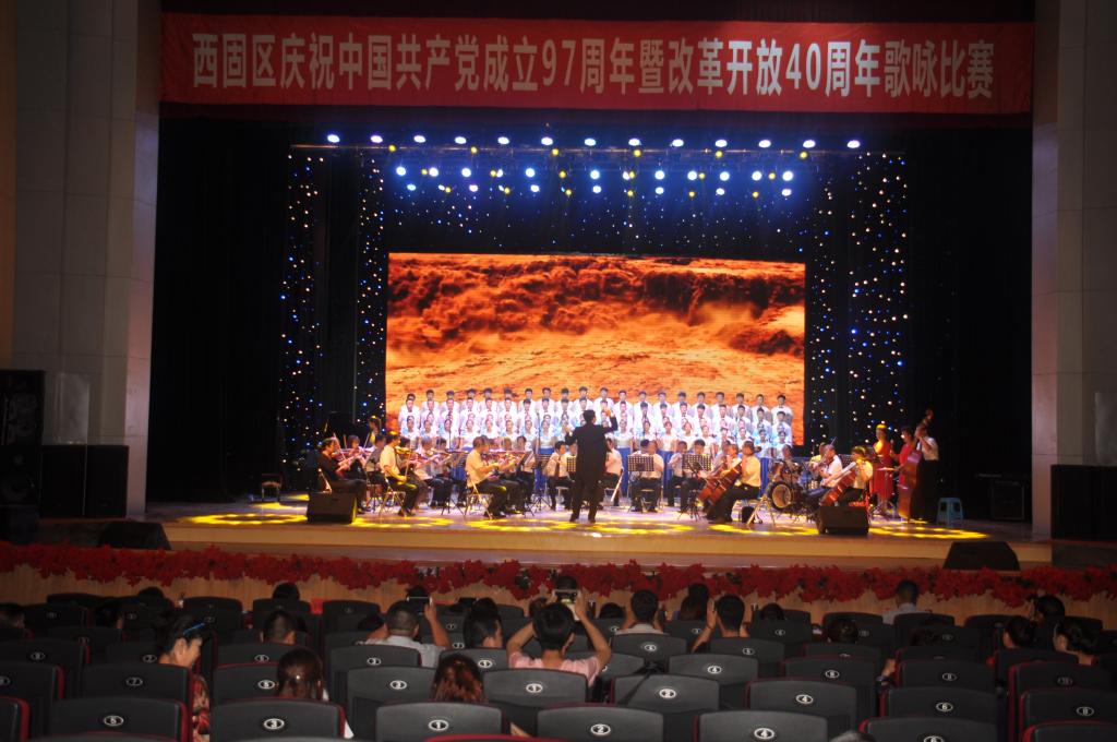 为庆祝党的97年华诞,庆祝改革开放40周年,热情讴歌党的光辉历程和伟大成就,继承发扬党的光荣传统和优良作风,深入贯彻落实党的十九大和习近平总书记系列讲话精神。6月27日,西固区石化文化宫内歌声嘹亮,一曲曲唱响新时代的颂歌在改革开放40周年的春风里,掀起了西固人民庆祝中国共产党成立97周年的热情。以“歌唱新时代,颂歌献给党”为主题的庆祝建党97周年暨改革开放40周年歌咏比赛在兰州石化文化宫举行。