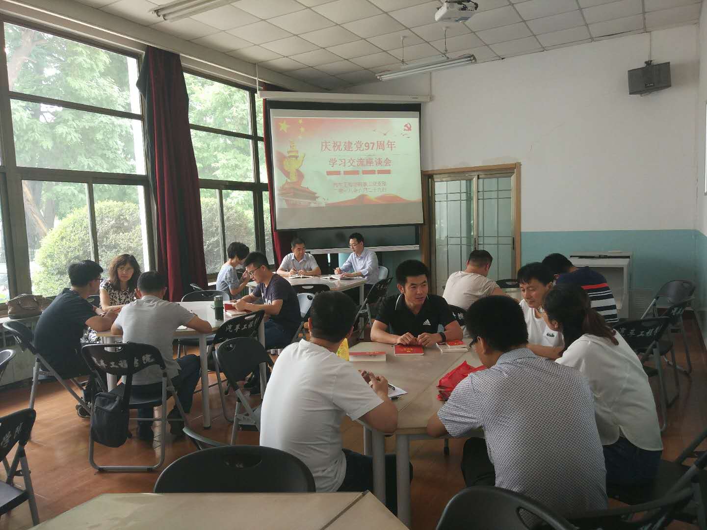 2018年6月29日,为庆祝中国共产党成立97周年,深入学习宣传党的十九大精神和习近平新时代中国特色社会主义思想,将“两学一做”学习教育常态化制度化向纵深发展不断推进。汽车工程学院教工党支部通过座谈会的方式开展了庆祝建党97周年主题党日活动。