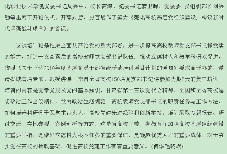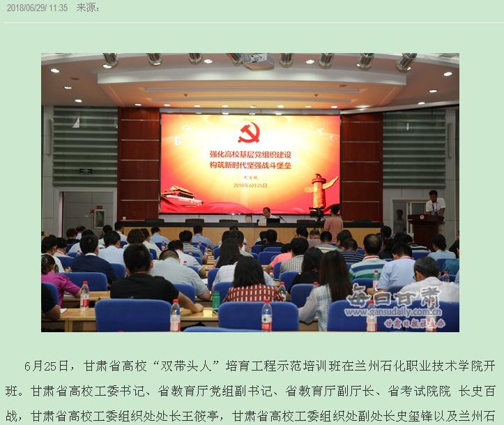 【每日甘肃网】甘肃省高校“双带头人”培育工程示范培训班在兰州石化职业技术学院开班