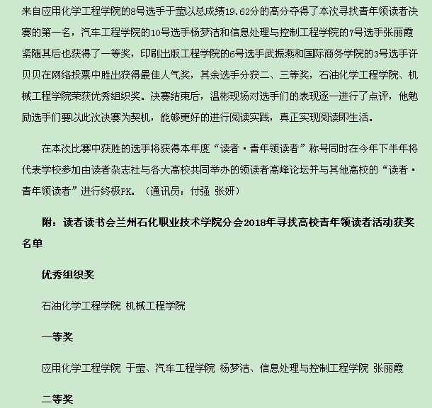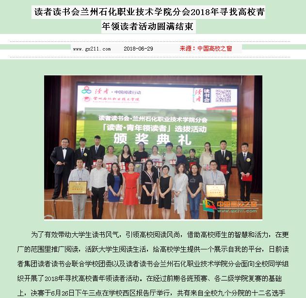 【中国高校之窗】读者读书会兰州石化职业技术学院分会2018年寻找高校青年领读者活动圆满结束