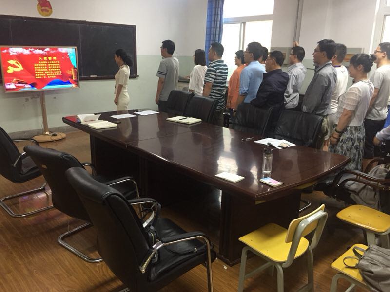 7月3日下午,机械工程学院教工党支部开展了以“重温誓词,回归初心”为主题的党日活动。全体教工党员胸前佩戴党员徽章,在党支部书记张胜男同志的领誓下,重温烙印在心中的入党誓词,面对鲜艳的中国共产党党旗,全体党员一道举起右拳庄严宣誓,铿锵有力的誓言,让党员同志们重温了初心,警醒党员同志们要牢记入党誓词,坚定理想信念,践行对党的承诺。