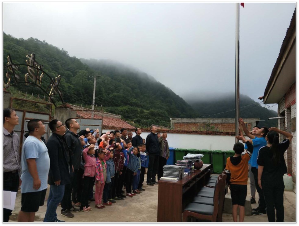 8月16日早晨,社会实践志愿服务分队和村委会干部、部分村民及中、小学生一同进行了升旗仪式,开展了爱国主义精神宣传教育。