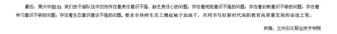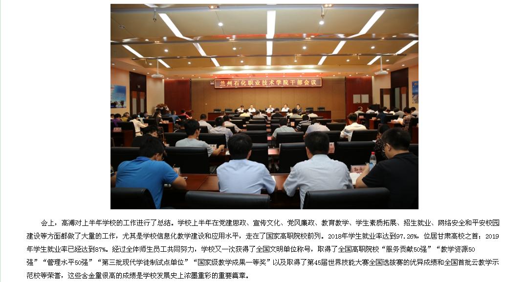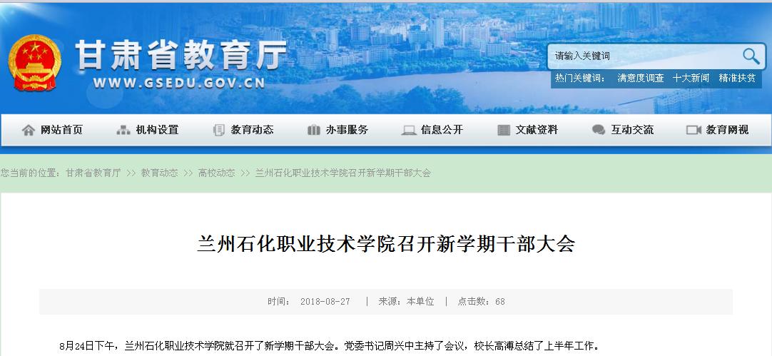 【省教育厅网】兰州石化职业技术学院召开新学期干部大会