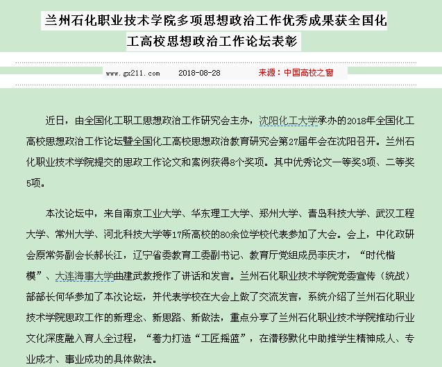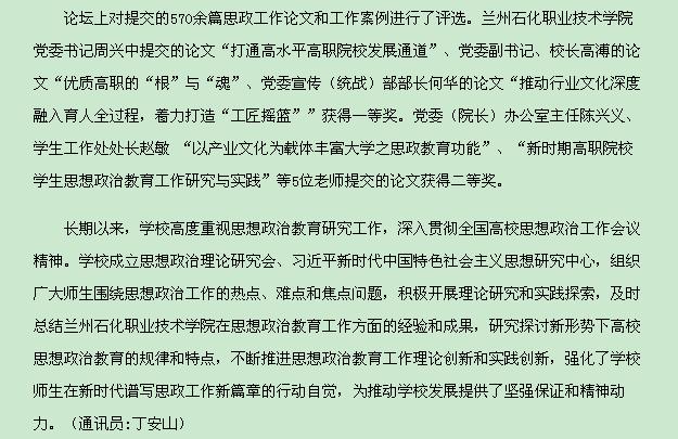 【中国高校之窗】兰州石化职业技术学院多项思想政治工作优秀成果获全国化工高校思想政治工作论坛表彰