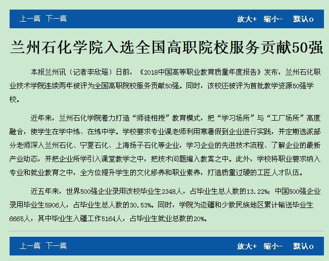 【甘肃日报】兰州石化学院入选全国高职院校服务贡献50强