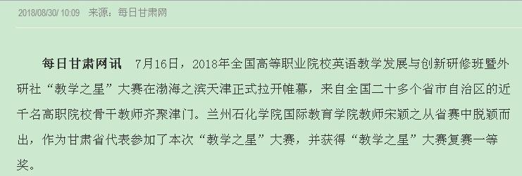 【每日甘肃网】兰州石化职业技术学院教师获外研社杯全国“教学之星”大赛复赛一等奖