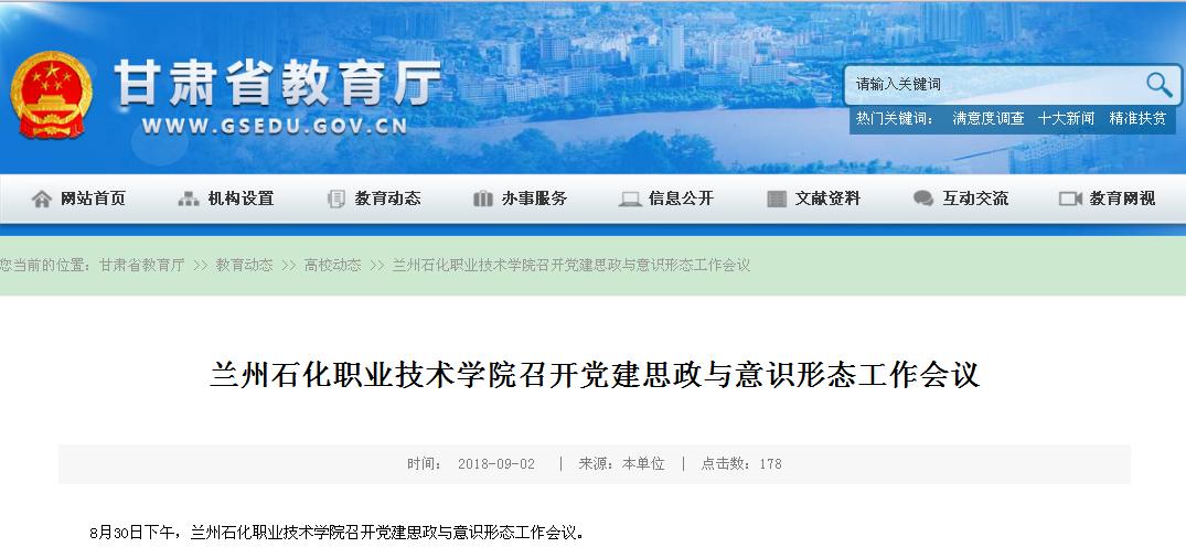 【省教育厅网】兰州石化职业技术学院召开党建思政与意识形态工作会议